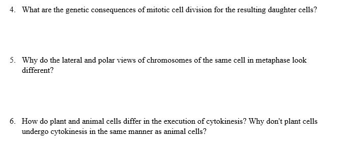 Solved 4 What Are The Genetic Consequences Of Mitotic Ce Chegg Com from media.cheggcdn.com In cells such as animal cells that lack cell walls, cytokinesis follows the onset of anaphase. The big event in cytokinesis is the actual splitting of the cell into two new cells. The furrow deepens and constricts the center of the cell until the membrane touches. What are the parts of an animal cell? The actin filaments pull the equator of the cell inward, forming a fissure. In animal cells, the plasma membrane of the parent cell pinches inward along the cell's equator until two daughter cells form. What is the difference between plant and animal cells? The cell cycle is tightly regulated to insure that it is completed correctly.